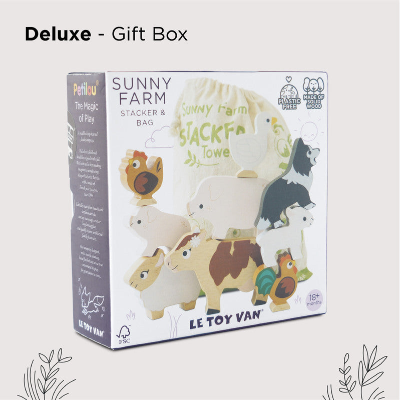 Each stackable character features a lovely painted design made with water-based, child-safe colours, ensuring that children can play safely and responsibly. And when playtime is over, simply store the pieces in the handy cotton drawstring bag to keep them safe and organised.