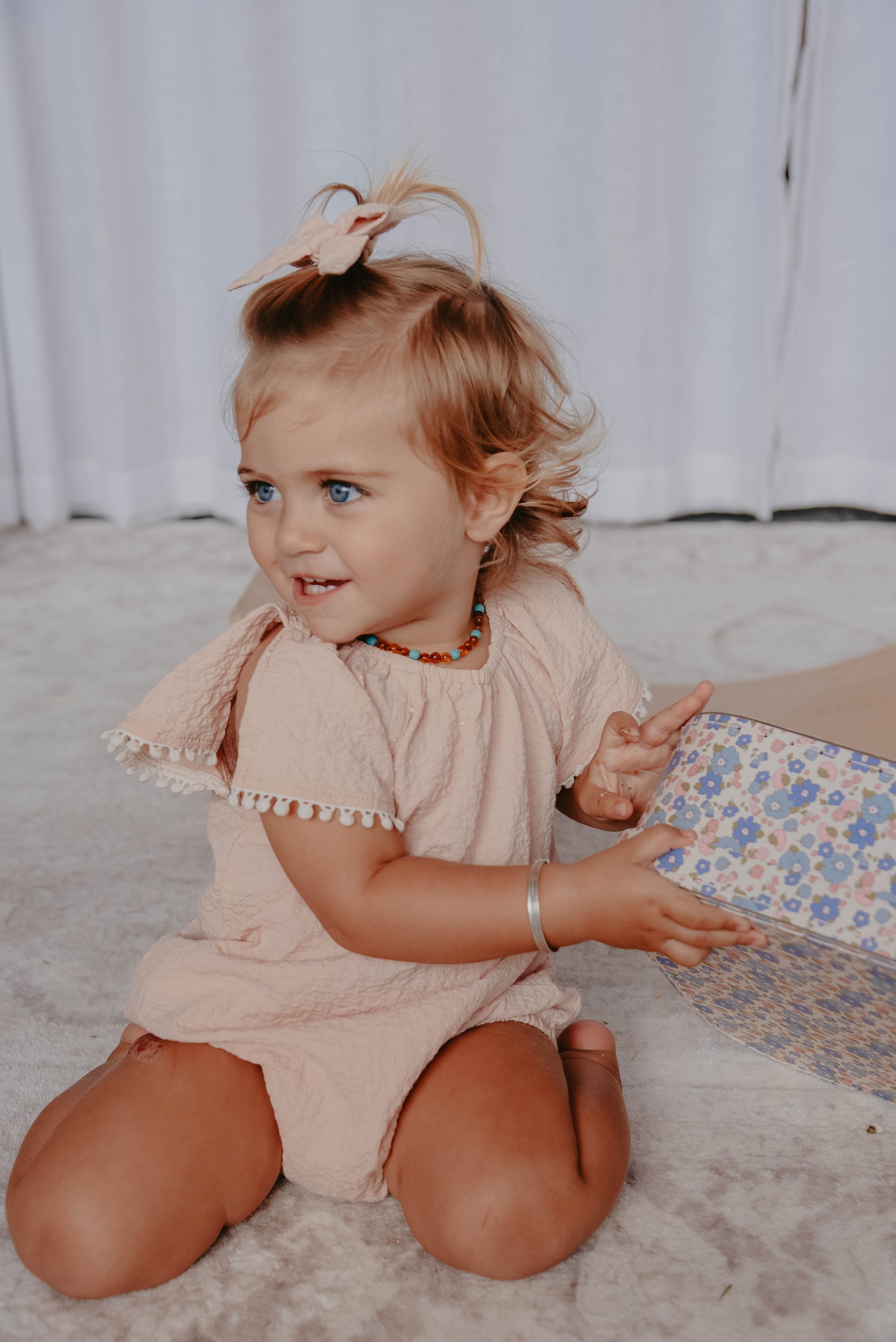 This sweet and flowy romper is easy to wear and perfect for any occasion. The romper features a softly gathered neckline, sleeves that fall softly over the shoulder and press studs for easy accessibility to assist in taking on and off.
