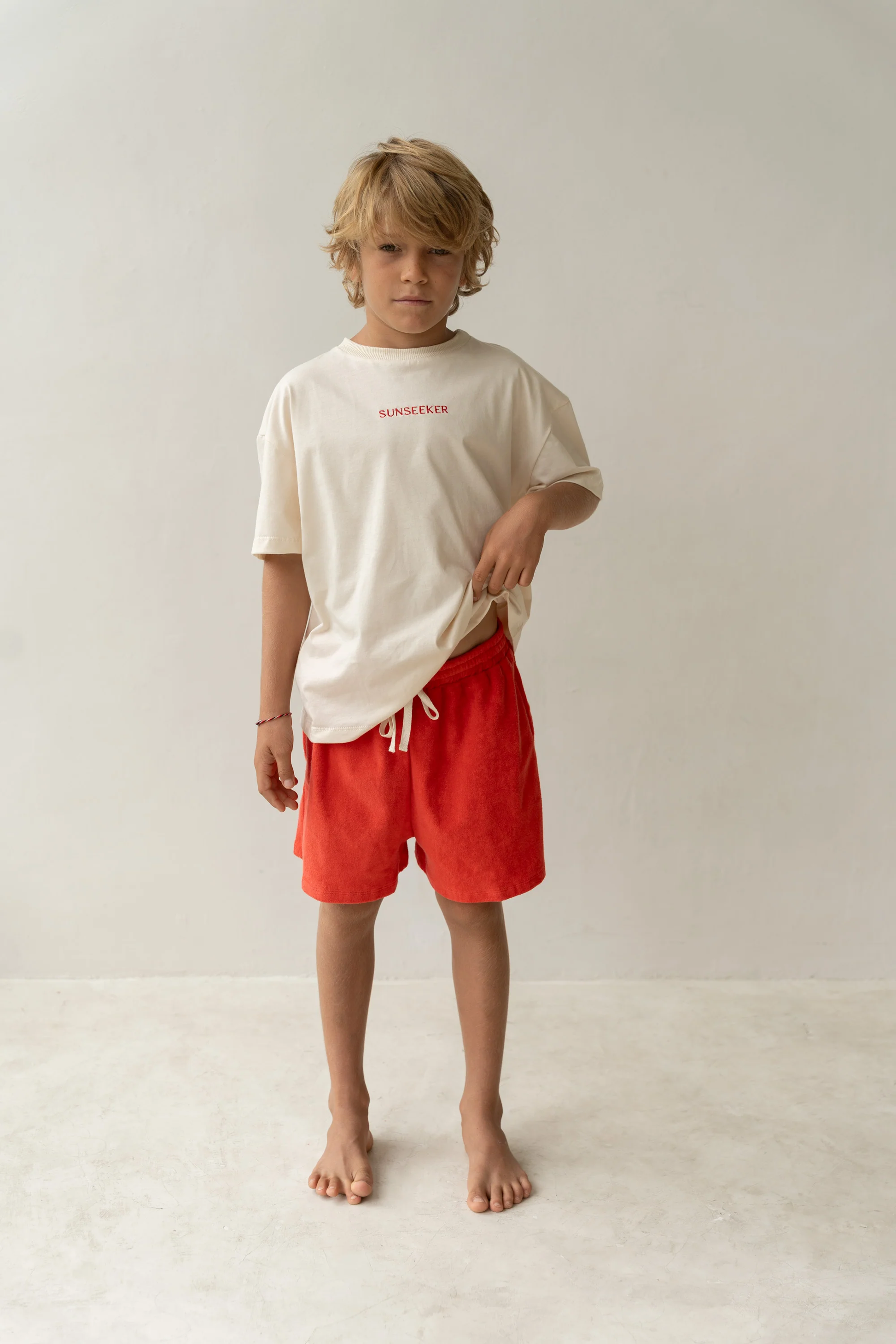 Discover the ‘Sunseeker’ embroidered tee. Crafted from breathable cotton, this style features a slightly oversized fit with a classic ribbed neckline. A wardrobe staple, this tee was designed to integrate effortlessly with your little love’s everyday favourites.