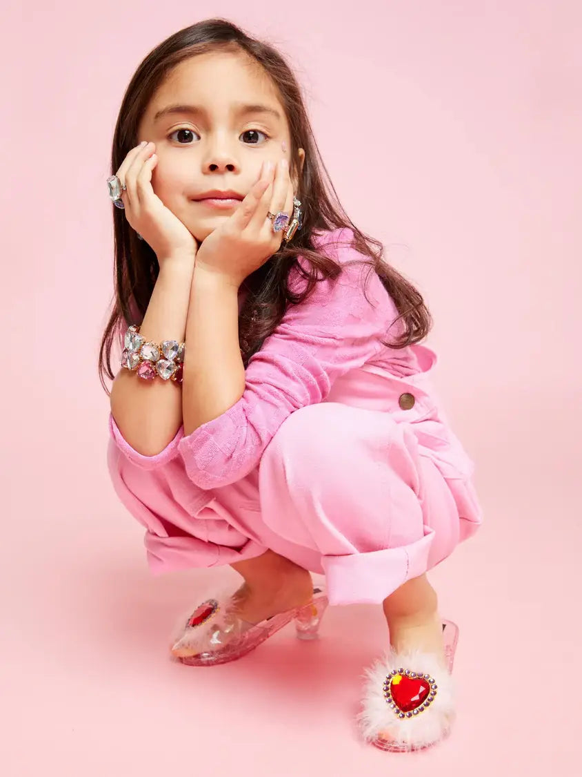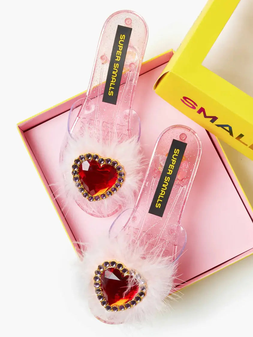 What Dress Up Dreams Are Made Of! The shoes that’ll set your heart aflutter, the Daydream Queen Play Shoes are ready for their dress-up debut! Featuring a glitter design, oversized red heart jewel, feather accents, and pearls and gems inside the heels (make music while you walk!), they’ll inspire pretty in pink playtime daydreams. *One size: recommended for kids ages 3-6 or shoe size 9.5-12 (with a little room to grow!)