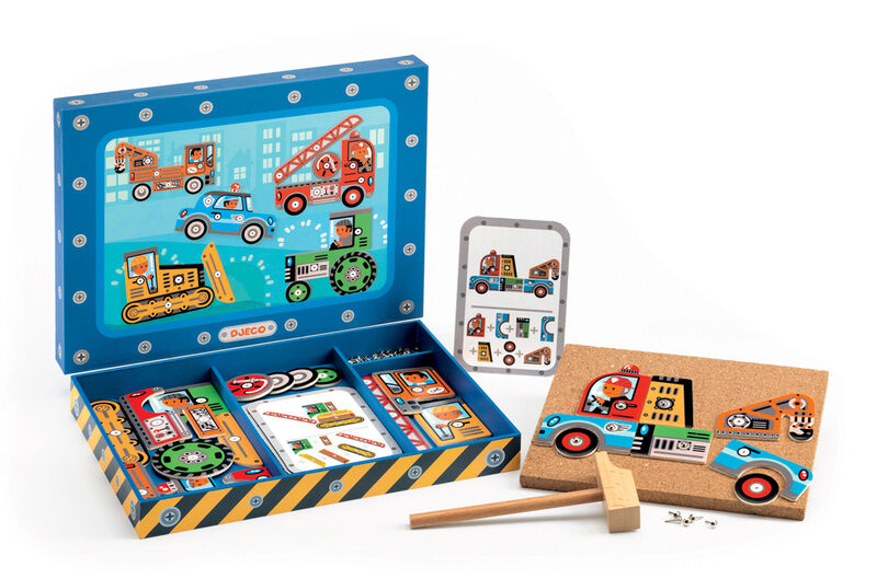 Make your own vehicle, tap tap it into place. Match the vehicles on the cards, or make your own! Ideal for developing dexterity of young children.